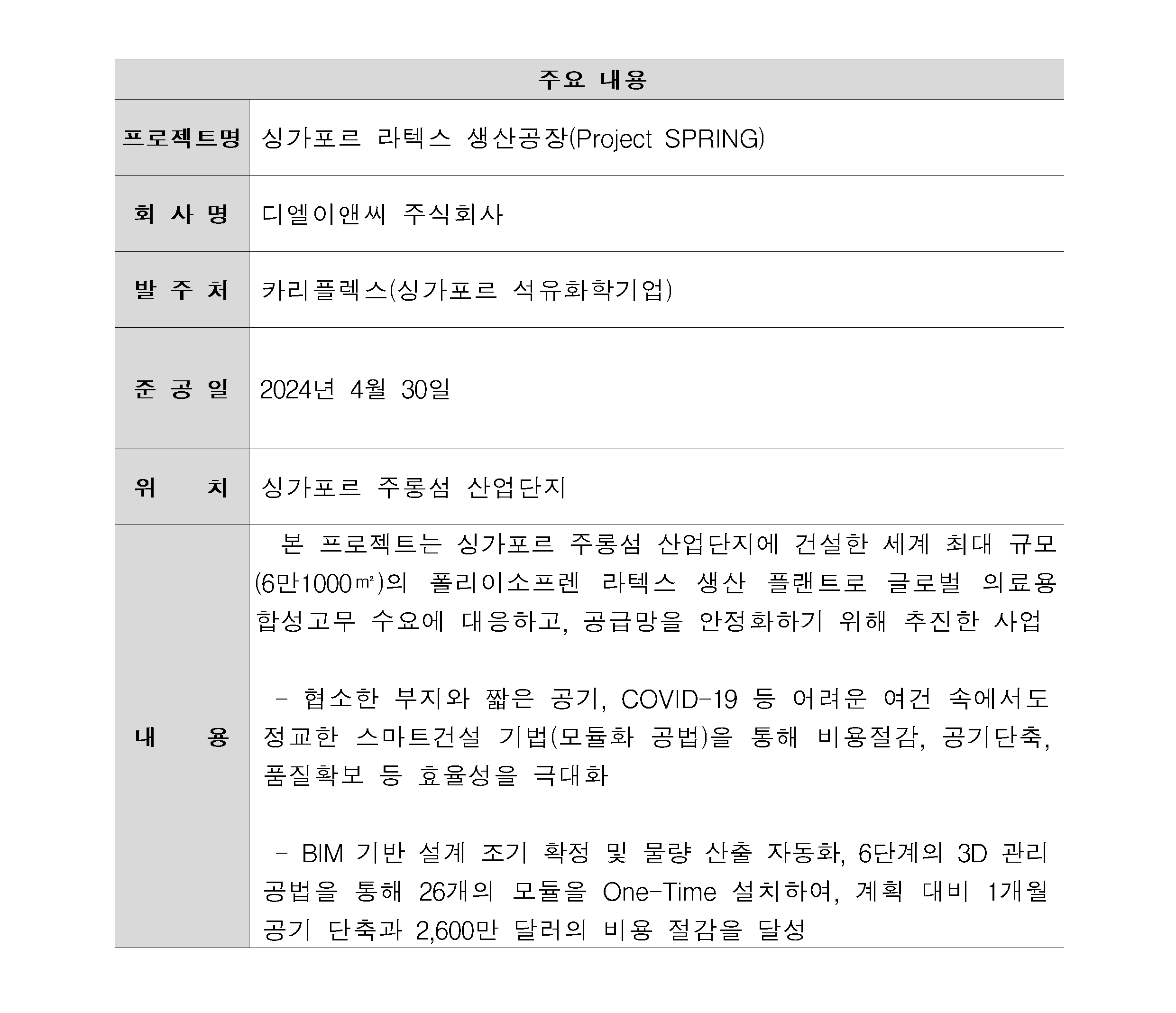 싱가포르 라텍스 생산공장(Project SPRING)