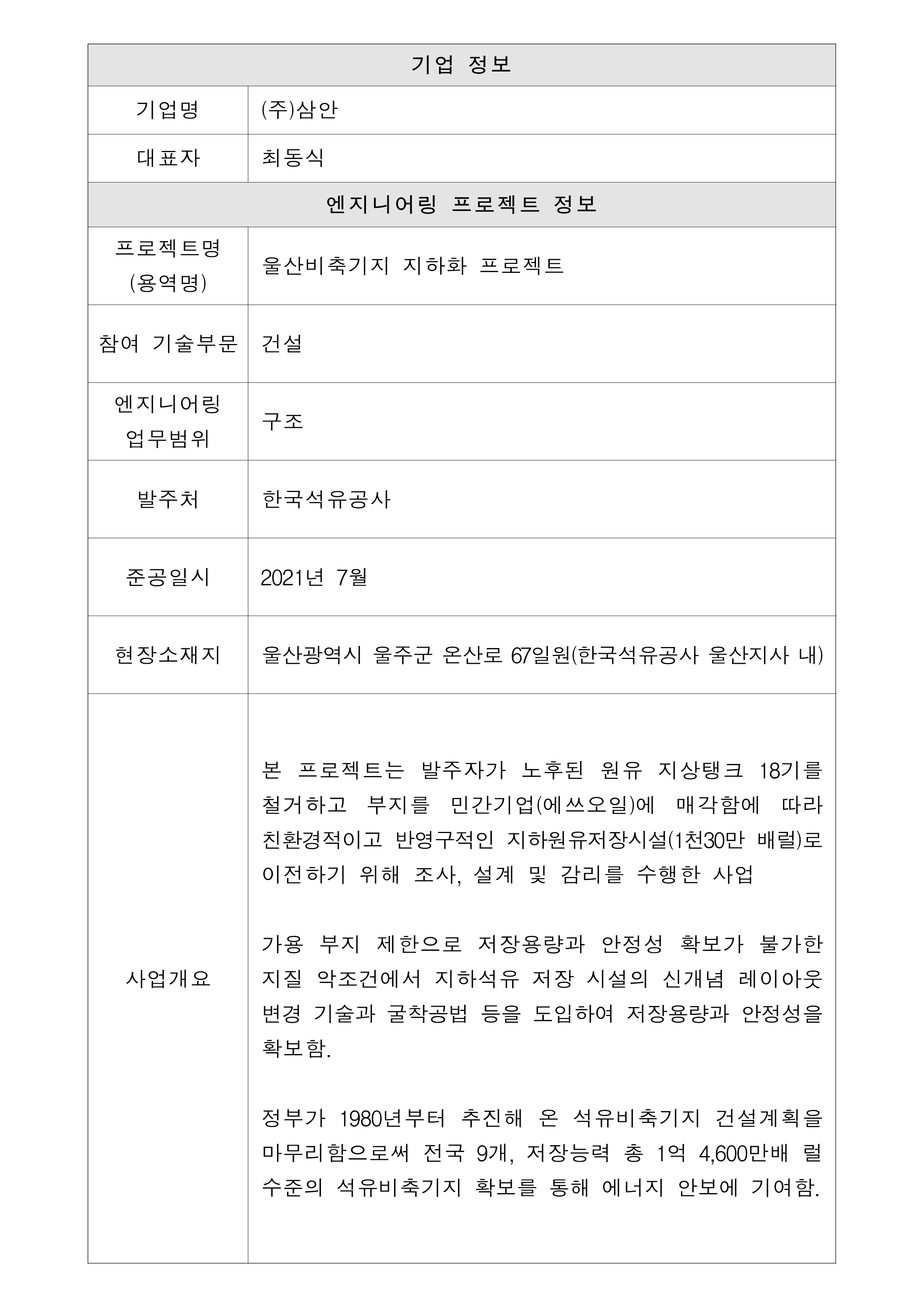 울산비축기지 지하화 프로젝트